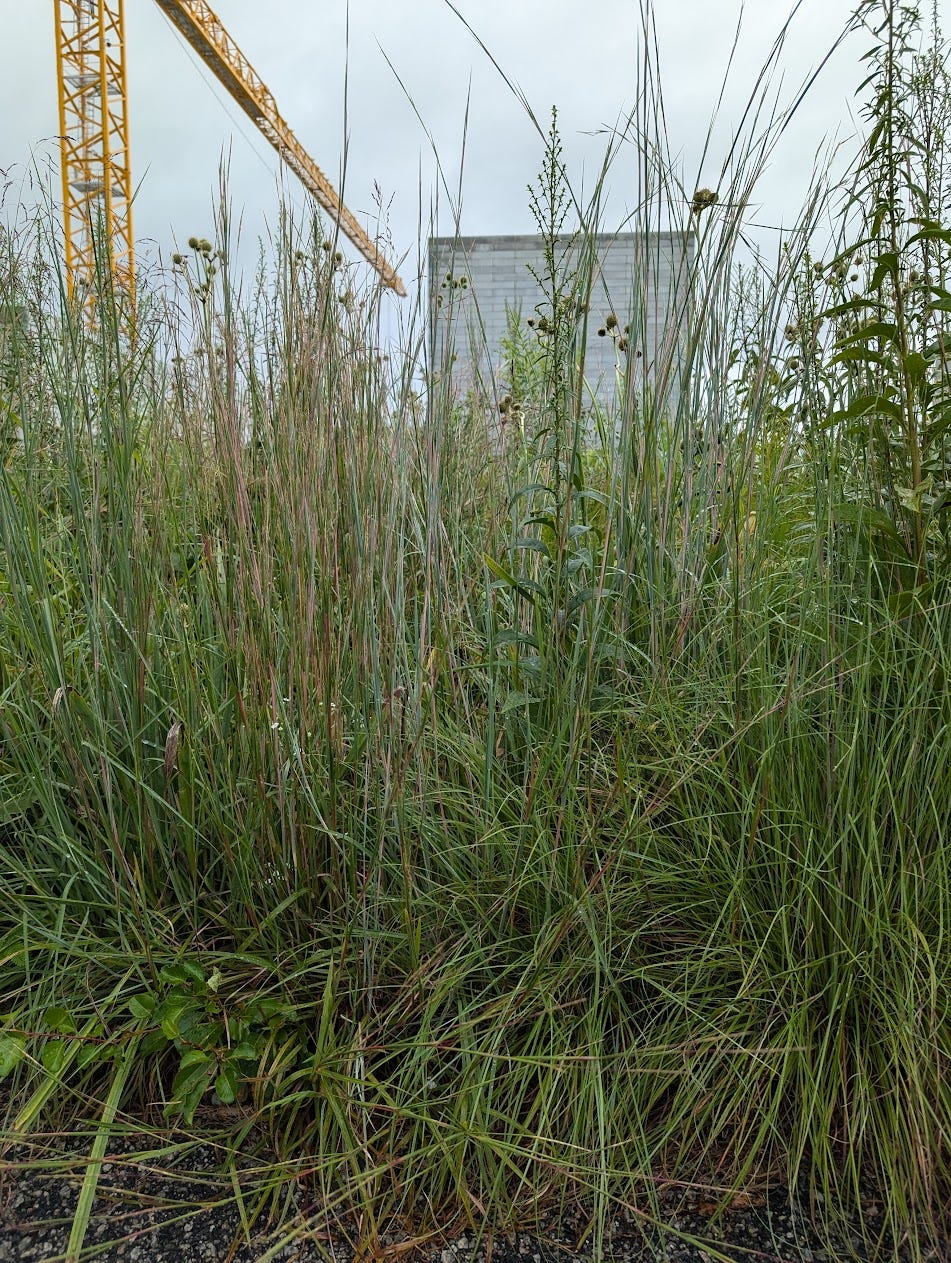 Panic Grass or Switch Grass is one of the tallest plants in the meadow. Unlike Purpletop and the Bluestems, Panicum virgatum was not part of the seeded meadow mix used on Glenstone because of how dominant it can be. It is a native plant, and is one of the "big four" of American praries and grasslands (Big Bluestem, Little Bluestem, Switchgrass, and Sorghastrum nutans). Because it has seeded itself naturally, you'll find clumps throughout the meadow but it has not overtaken the seeded meadow mix. My favorite view of Panicum is looking out of room 2 in autumn. By this time the grass has turned a tannish-golden color and catches the afternoon light as if someone has painted highlights on each individual leaf.